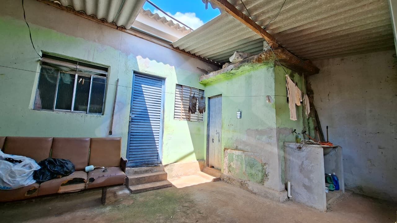 São 3 cômodos no fundo do terreno de laje, uma área com banheiro e cozinha separada.