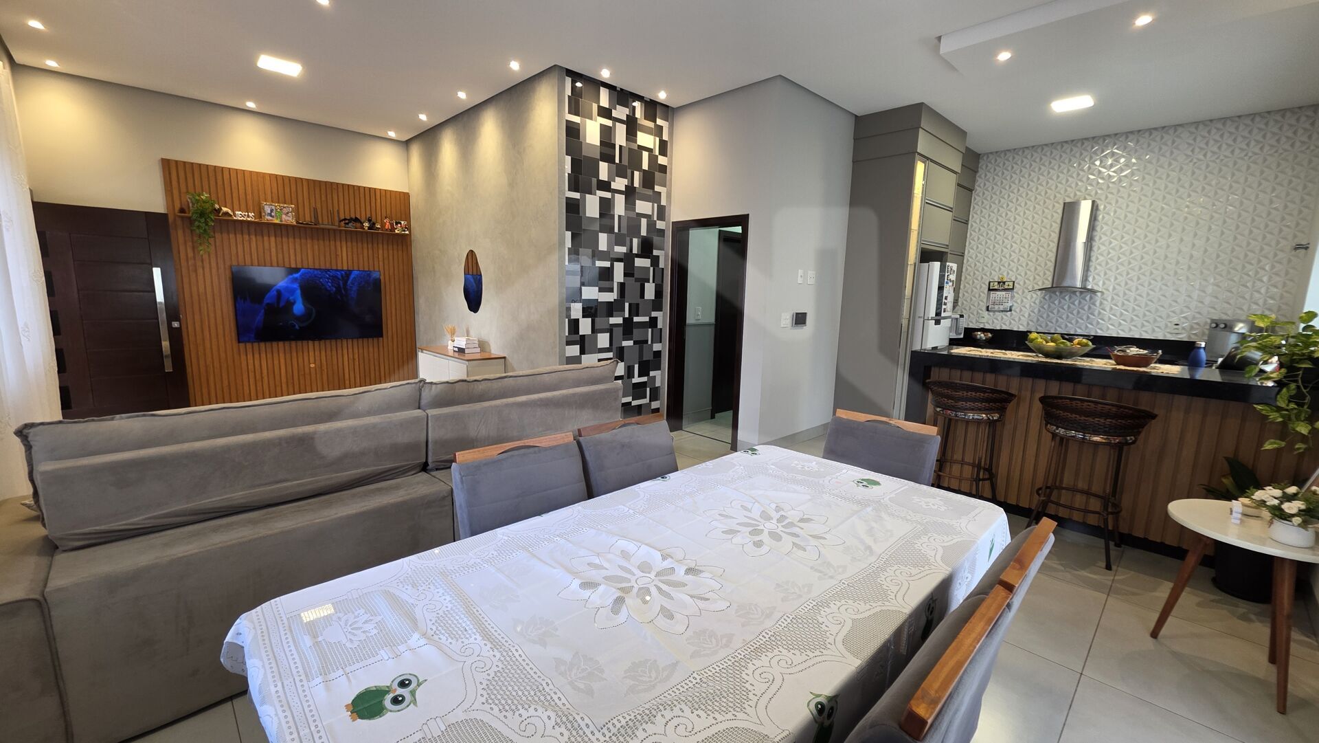 • Sala de jantar, sala de tv e cozinha integradas